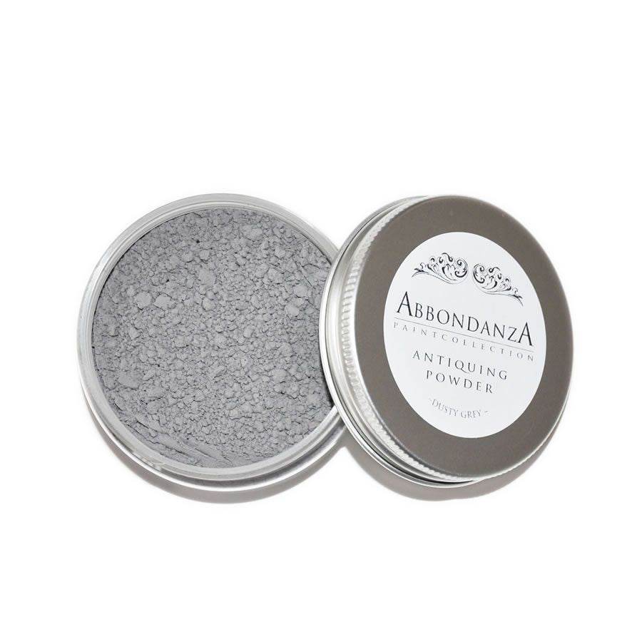Abbondanza Antiquing Powder Dusty Grey ist ein 100% natürliches Pulver, womit man schnell und einfach eine authentische Patina auf Möbeln und Accessoires kreieren kann.